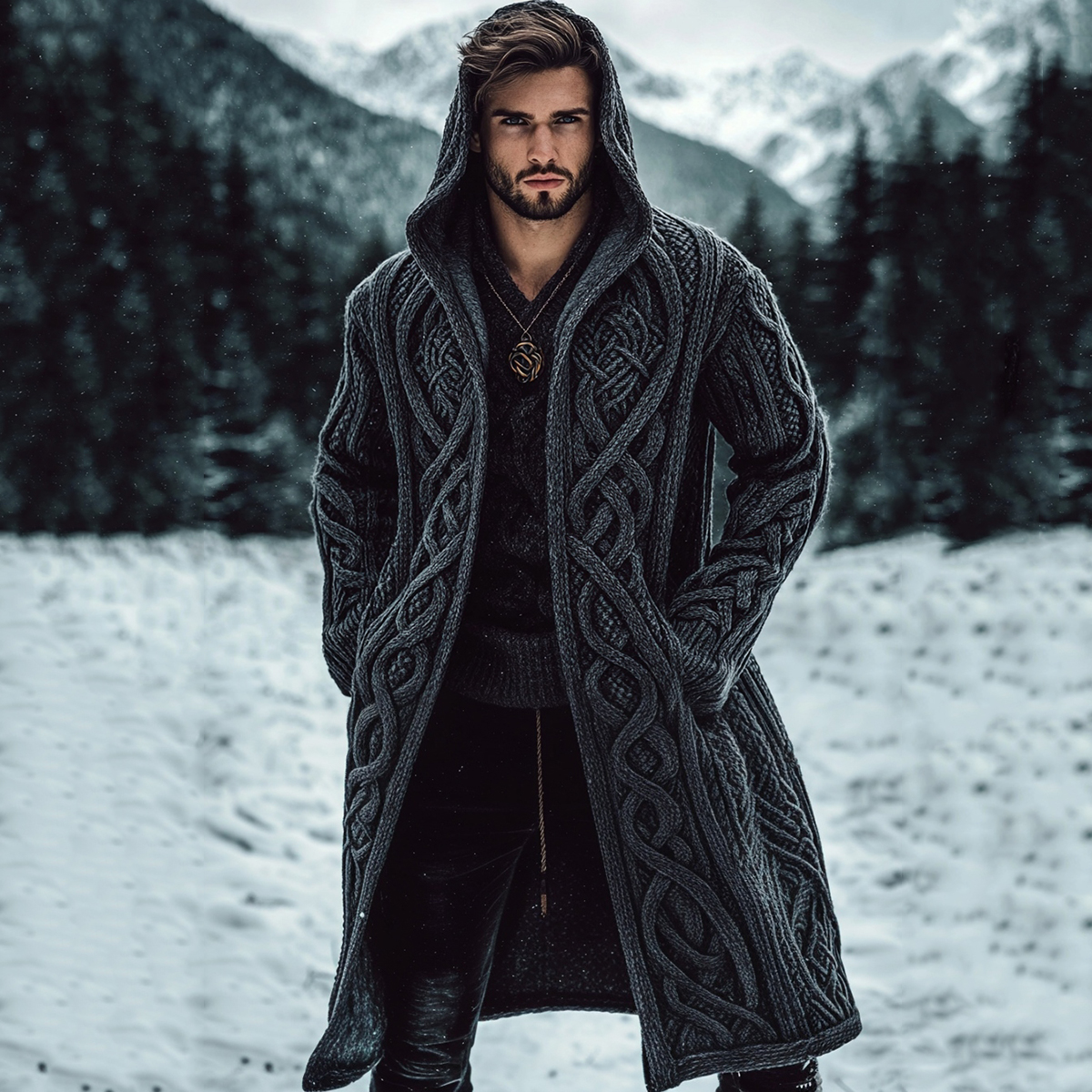 Men's Viking Celtic Knot Hooded Mid-length Cardigan Sweater