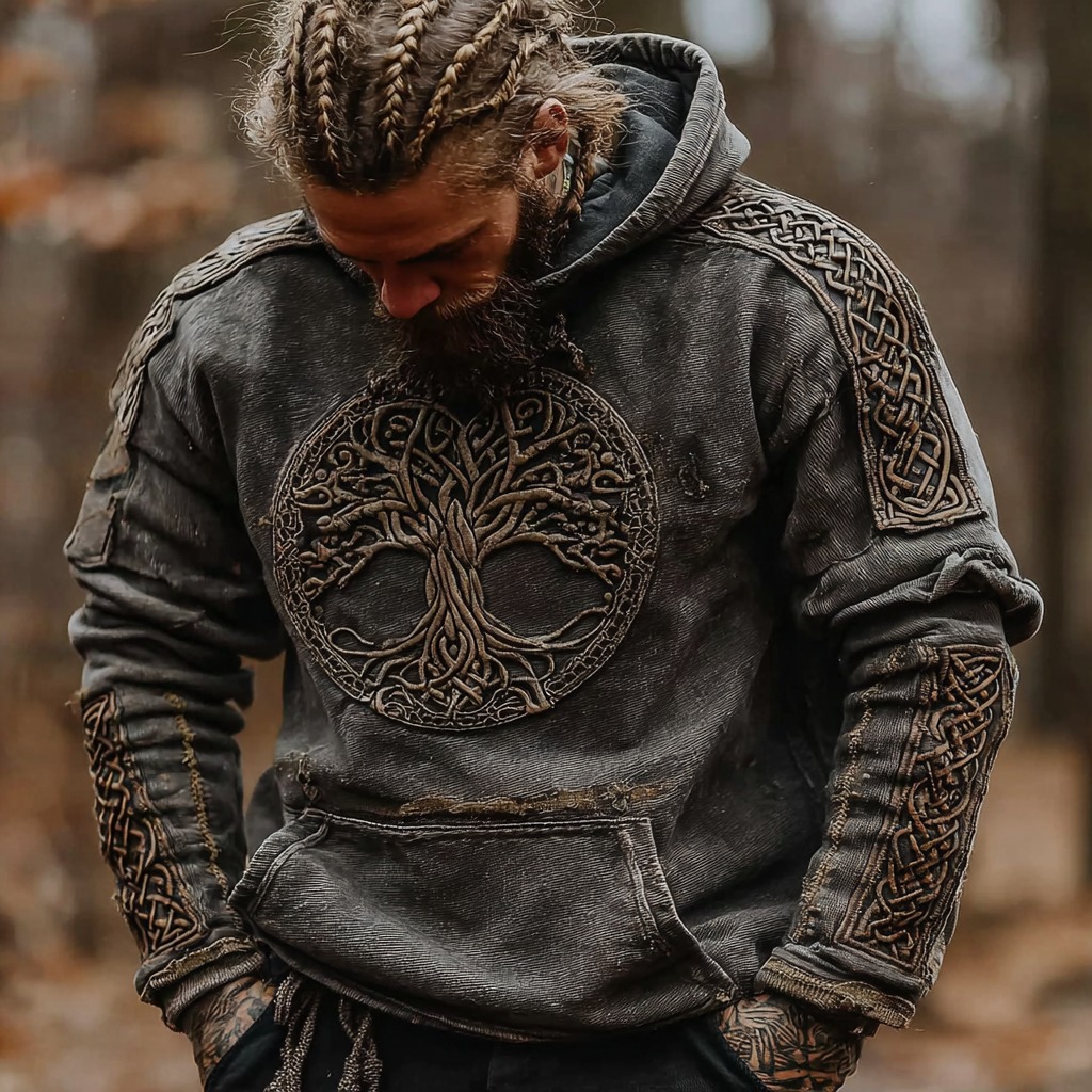 Men's Viking Celtic Knot Tree Of Life Embroidery Comfortable Warm Hoodie