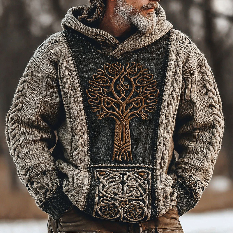 Men's Viking Celtic Knot Tree Of Life Stitching Comfortable Warm Sweater Hoodie