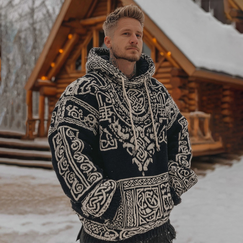 Men's Viking Celtic Pattern Art Cozy Hooded Sweater