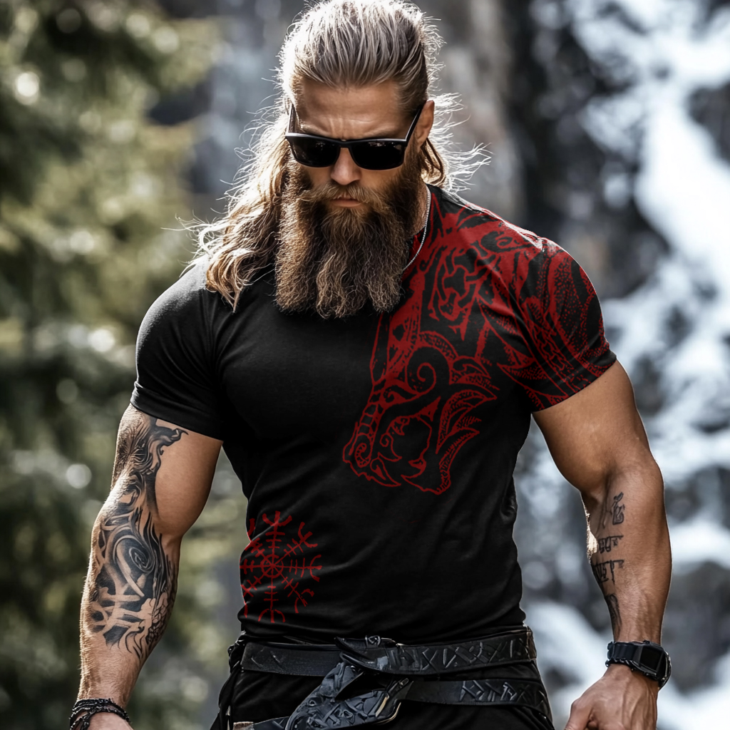 Men's Vintage Viking Wolf Rune Print T-shirt