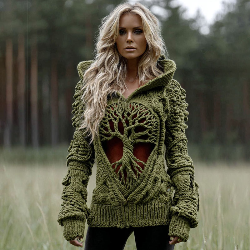 Viking Style Celtic Christmas Tree Casual Knit Hooded Sweater