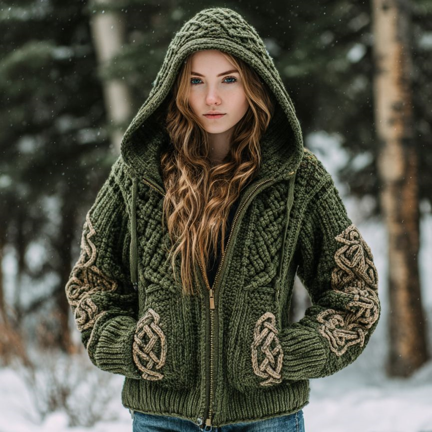 Viking Style Celtic Knot Art Hooded Cardigan Sweater