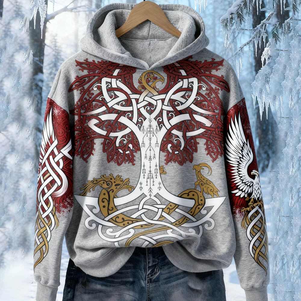 Vintage Casual Viking Print Hoodie