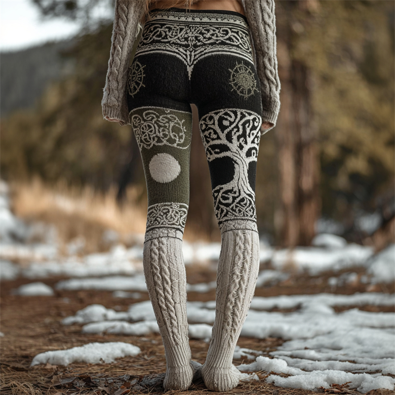 Vintage Tree Of Life Celtic Colorblock Cozy Knit Leggings