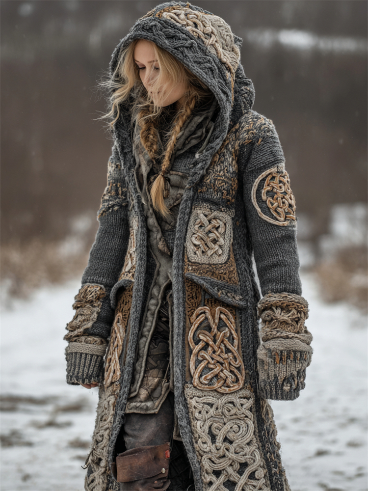 Vintage Viking Celtic Heather Patchwork Cozy Chunky Long Cardigan