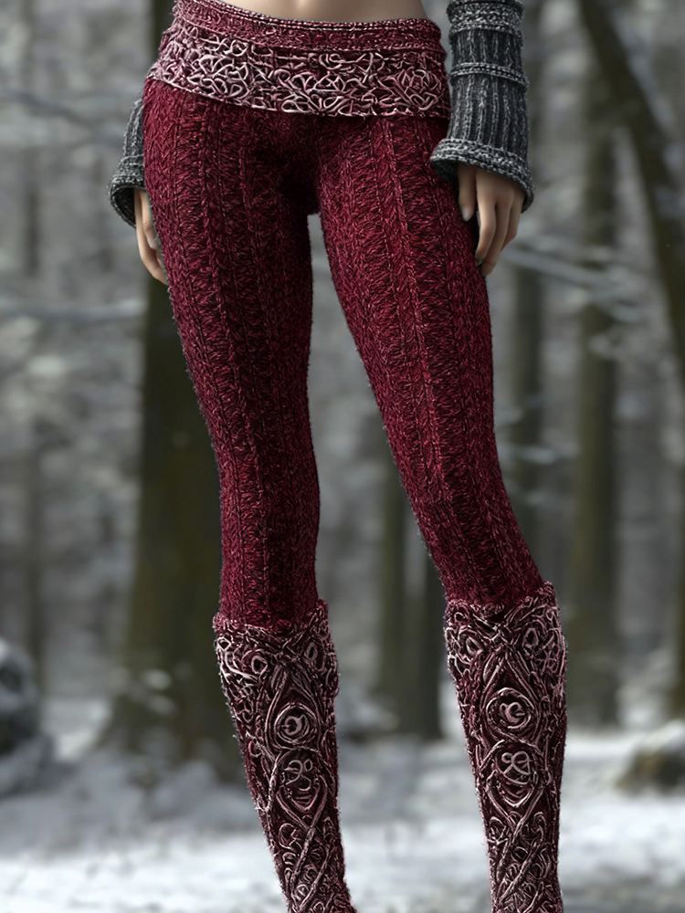 Vintage Viking Pattern Art Knit Cozy Leggings