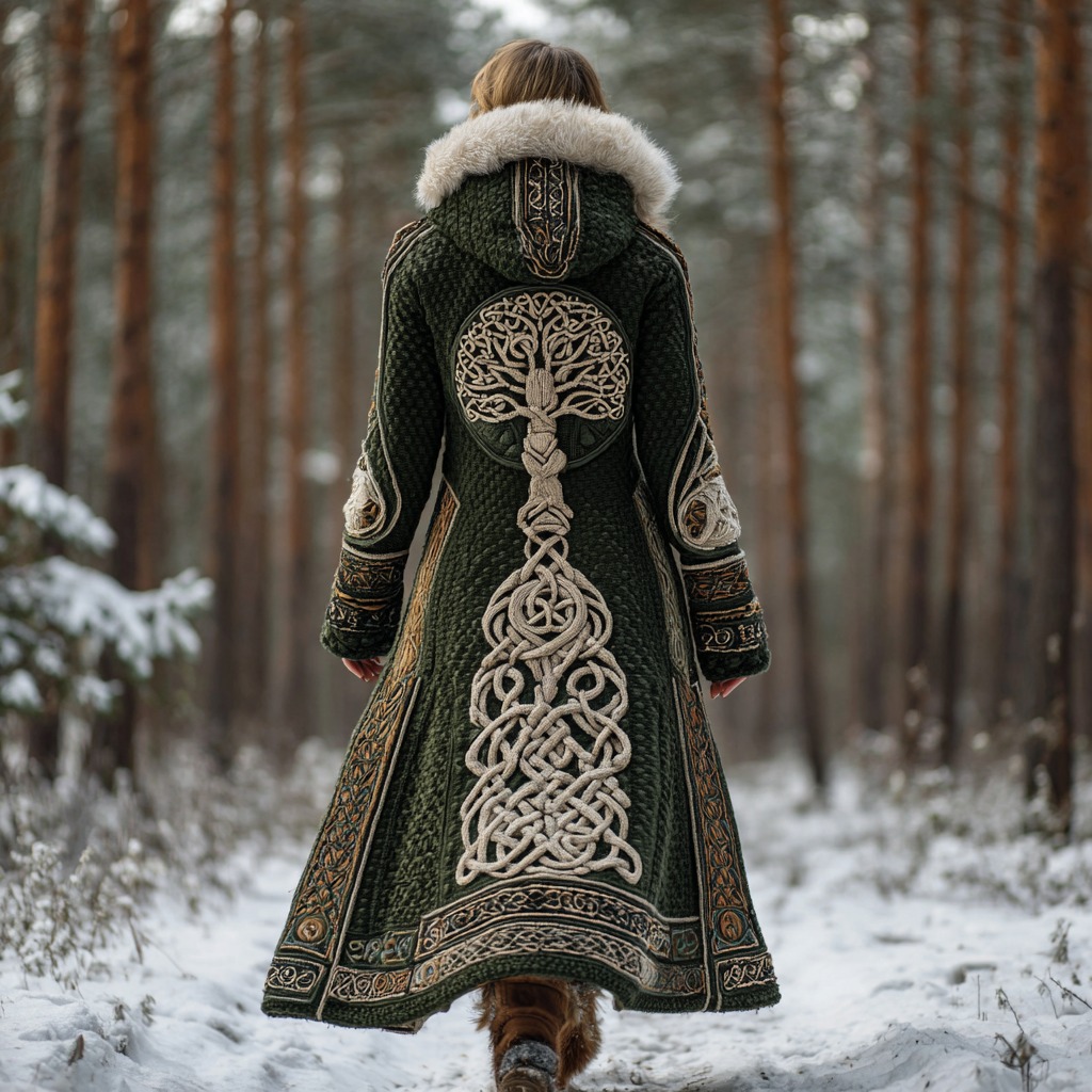 Women's Viking Life Of Tree Celtic Knot Knit Fuzzy Maxi Hooded Cardigan