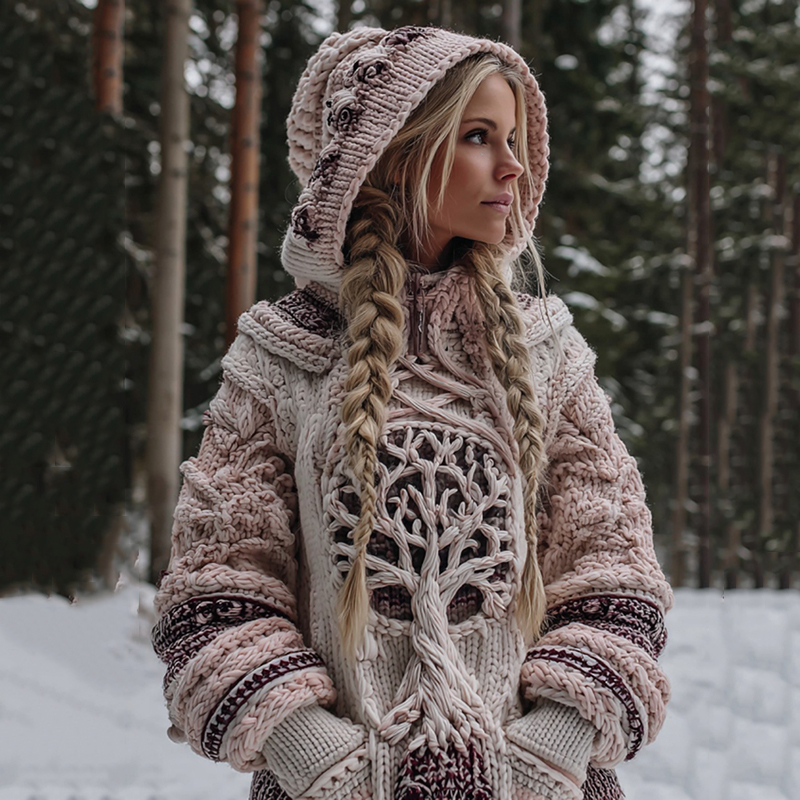 Women's Viking Tree Of Life Design Art Cozy Knit Hooded