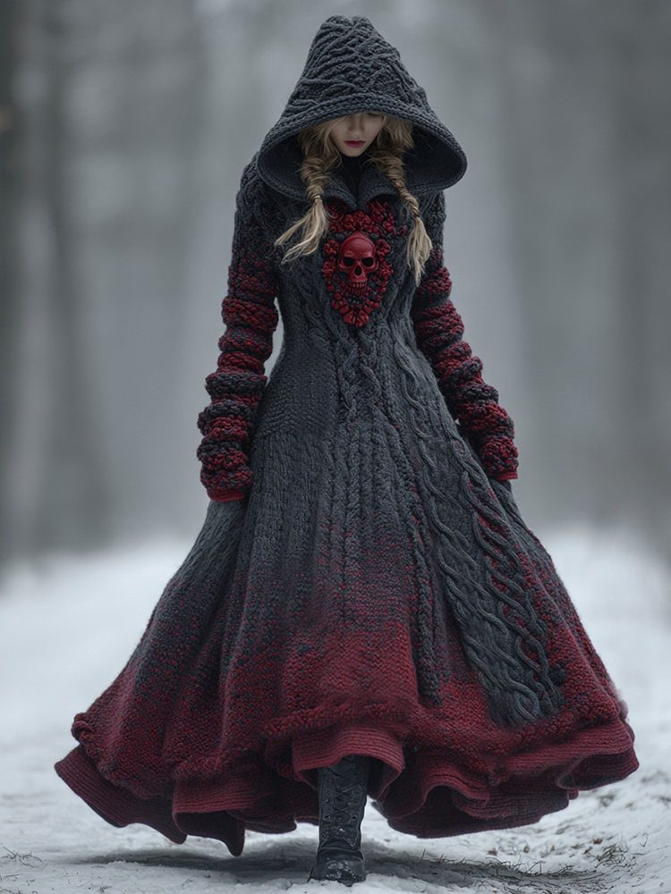 Women's Vintage Halloween Skull Ombre Hooded Sweater Dress