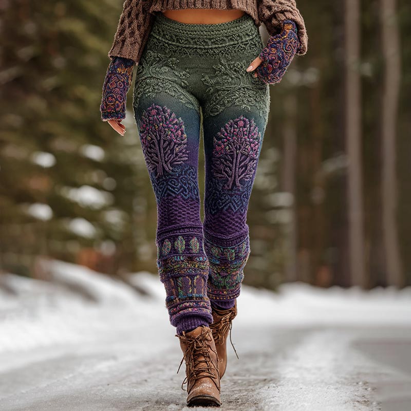 Women's Vintage Tree Of Life Gradient Casual Leggings