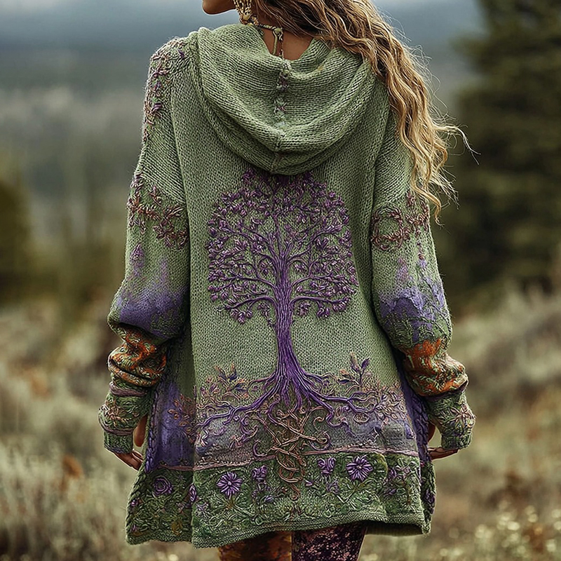Women's Vintage Viking Tree Of Life And Floral Pattern Knitted Cardigan Sweater